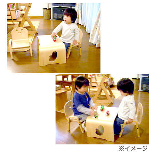 “自然”と“やさしさ”がコンセプト!「キコリの小イス」ファンのリクエストに応え、丸くてやさしいフォルムのテーブル(机)が登場!おえかきや、おりがみ、絵本などを楽しんでね。