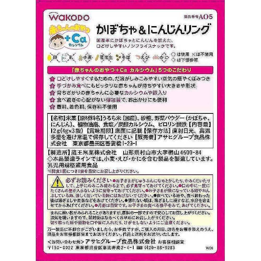 和光堂 赤ちゃんのおやつ+Ca カルシウム かぼちゃ&にんじんリング 【離乳食 ベビーフード】 【7ヶ月~】(お一人様10点限り)