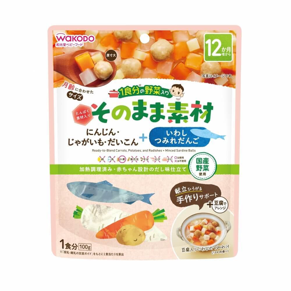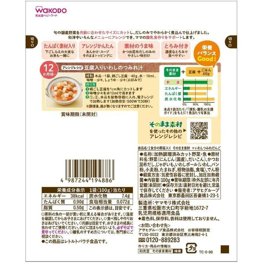 和光堂 1食分の野菜入り そのまま素材 +いわしつみれだんご 【キッズフード ベビーフード】 【12ヶ月~】(お一人様10点限り)