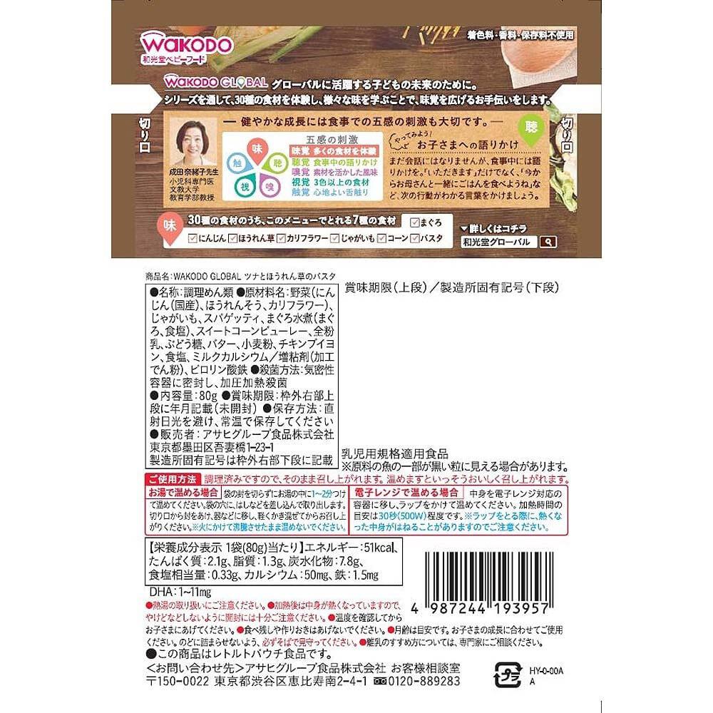WAKODO GLOBAL ツナとほうれん草のパスタ 【離乳食 ベビーフード】 【7ヶ月~】