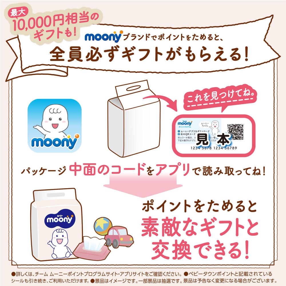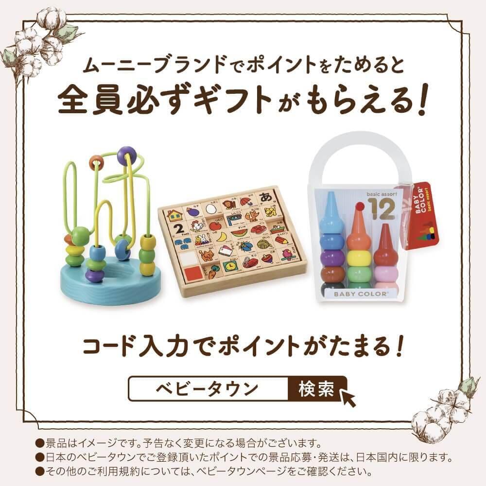 ●詳しくは、チーム ムーニーポイントプログラムサイト・アプリサイトをご確認ください。●ベビータウンポイントと記載されているシールも引き続き、ご利用いただけます。 ●景品はイメージです。一部景品は抽選です。景品は予告なく変更になる場合がございます。