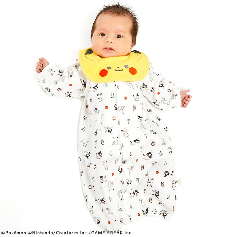 モンポケ ピカチュウ 新生児2WAYドレス スタイ付き (イエロー×50-70cm)
