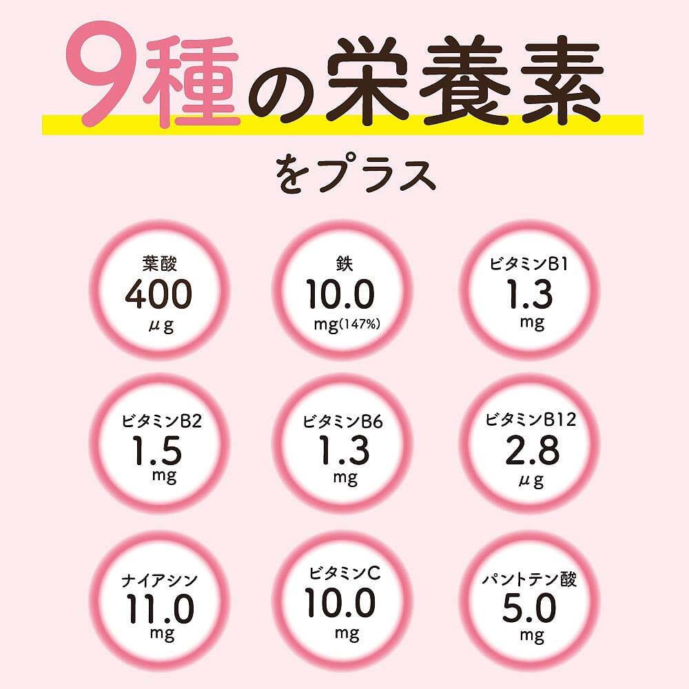 ●葉酸や鉄など9種の栄養素が1日1粒(目安)だけで、一度にとれます。