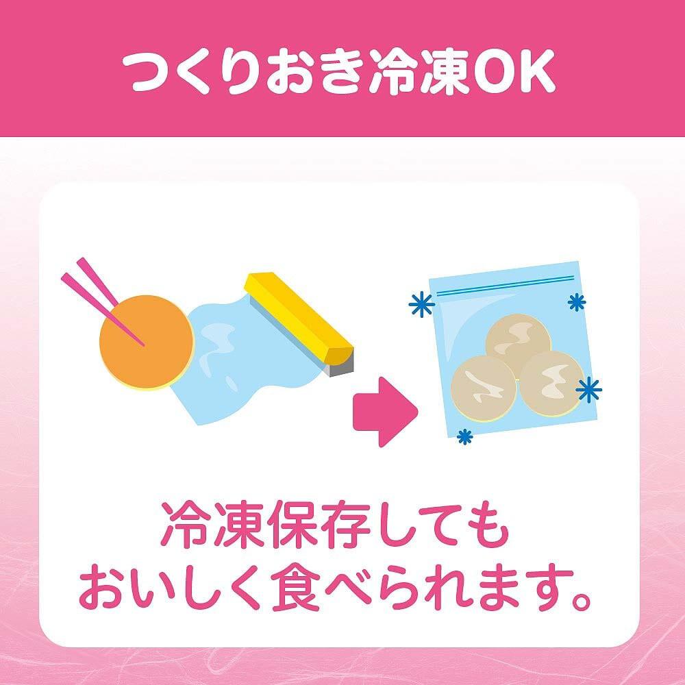 粗熱がとれたら清潔にとりわけ、1枚ずつラップに包む。チャック袋にいれ冷凍庫で保管し、1週間以内にお召し上がりください。