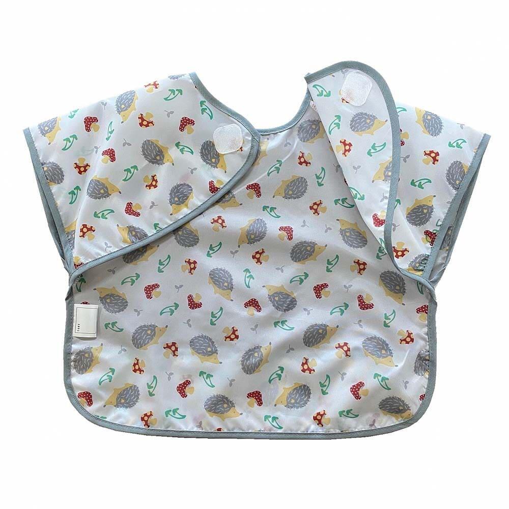 耐久はっ水加工素材を使用したエプロンで、お子様のお洋服も汚れにくく、また洗濯しても乾きやすく肌触りもさらりとしたドライ感覚で、ビニールの様なゴワゴワ感がありません。食べこぼしても大丈夫!これでママも安心です。柔らかい生地なのでくるくると小さくたためて持ち運びに便利です。首もとは面ファスナーを使用しワンタッチで簡単に着脱できます。(ワンタッチテープの角は丸くカットしてますのでお子様に安心です)