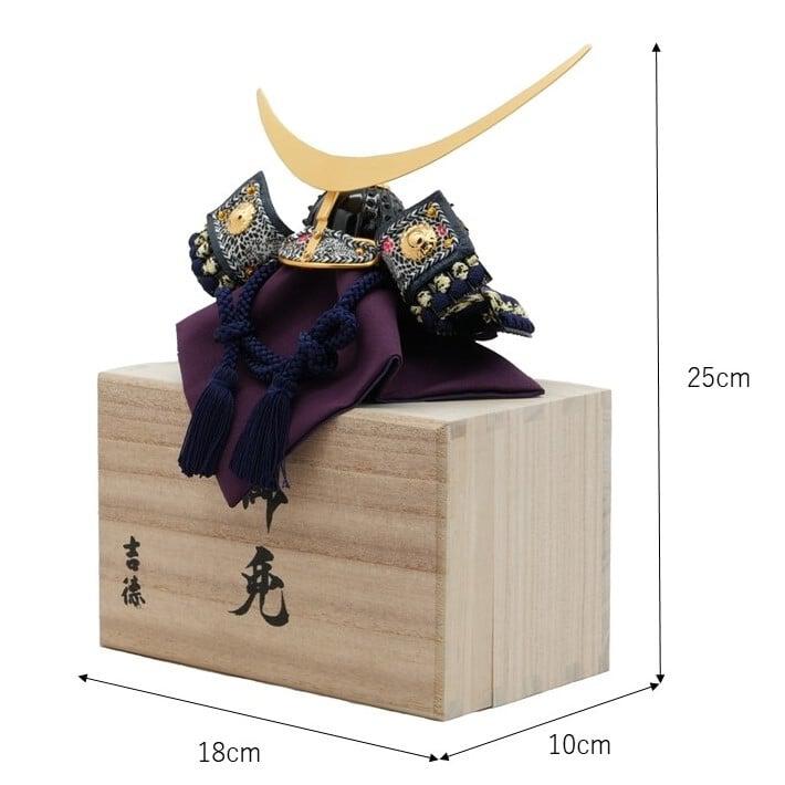桐箱入りの伊達政宗公モデルの小さな兜飾りです。