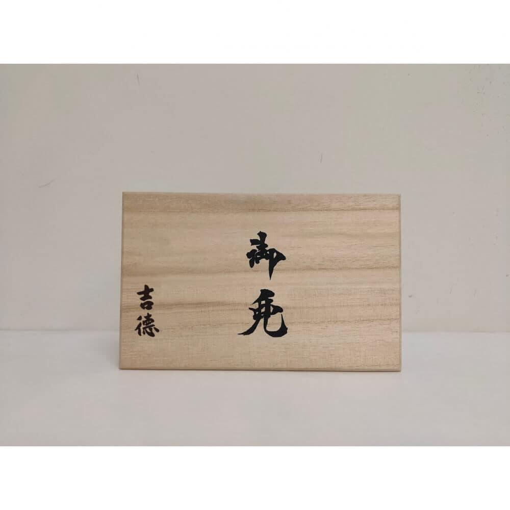 桐箱入りの徳川家康公モデルの小さな兜飾りです。桐箱の上に兜を載せてそのままお飾り頂けます。