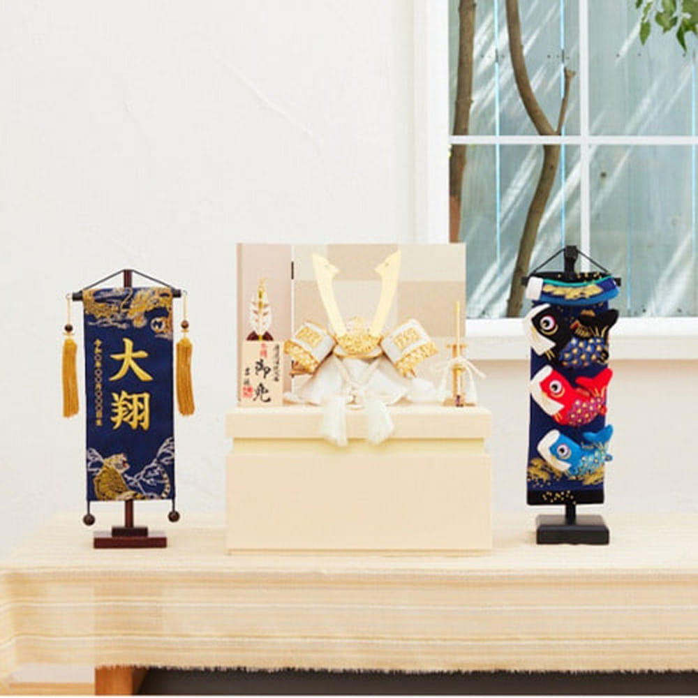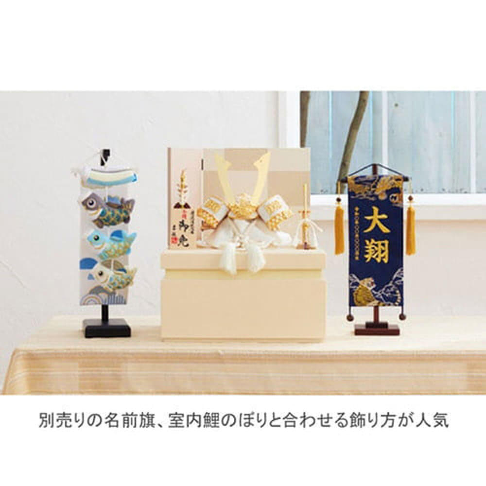 <おすすめの飾り方>お子さまのお名前と生年月日の入った名前旗(別売り)と合わせて、節句をより華やかにお祝いしましょう。いま人気の飾り方です。選び方は、高さと色味を合わせると統一感が出て、お写真の撮影にもおすすめです。