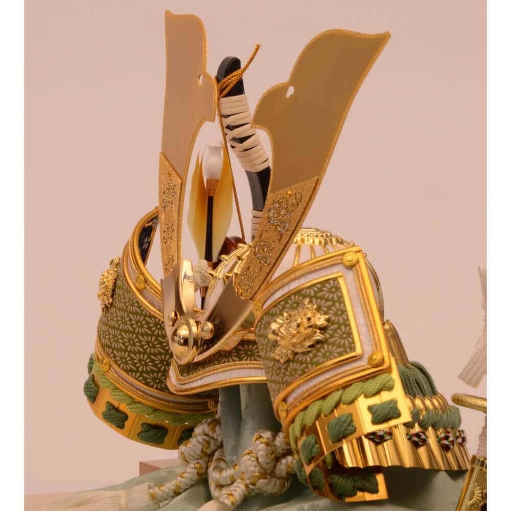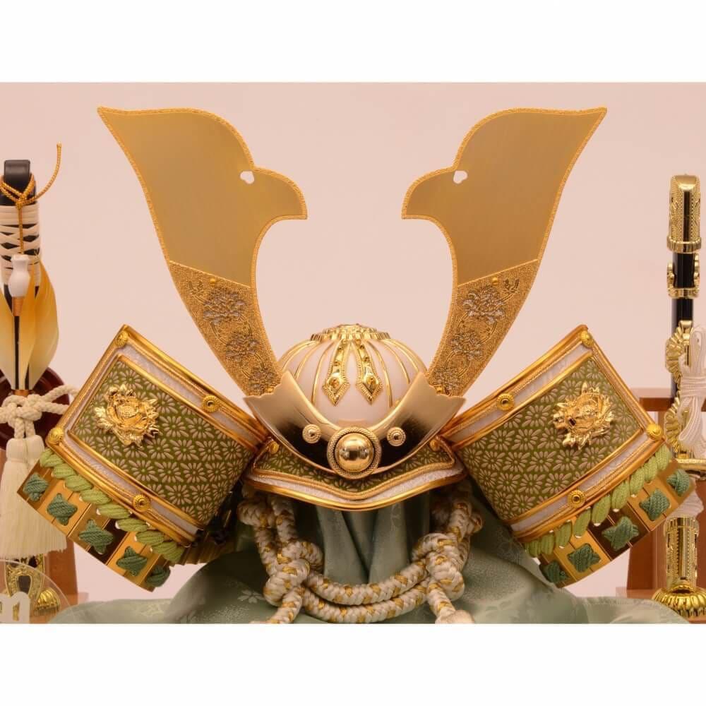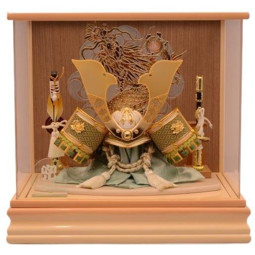 トイザらス・ベビーザらスがおすすめする『兜ケース飾り「緑絲縅木目昇龍アクリル」』の五月人形です。