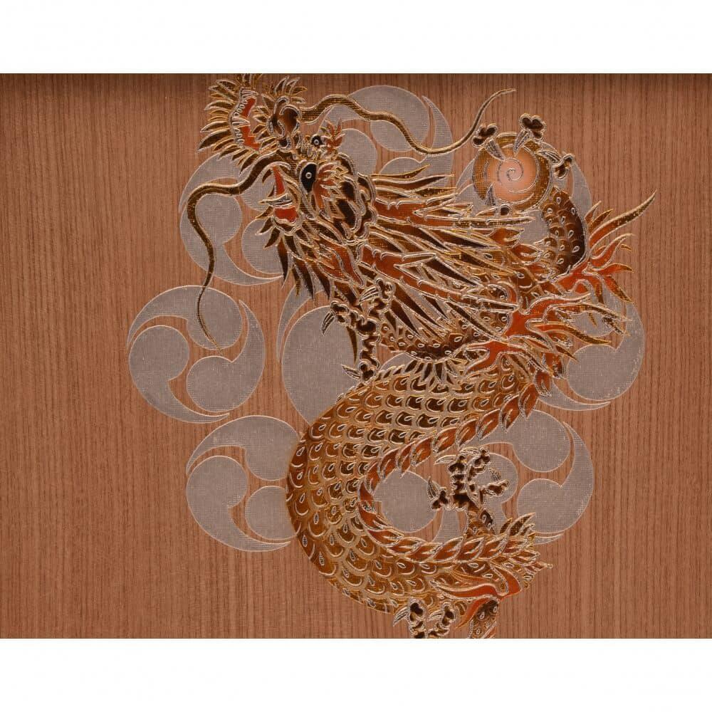 前面に柱のないパノラマアクリルケースの背景には龍を描きました。