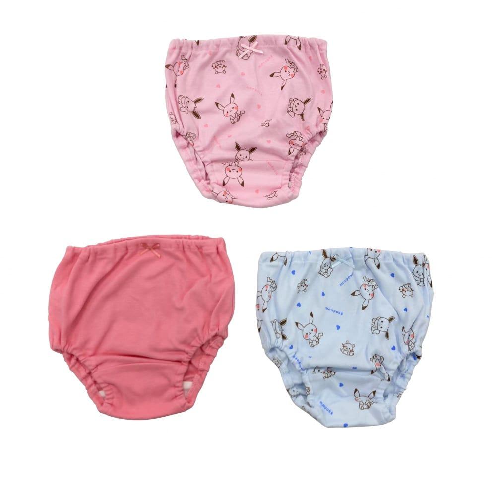 monpoke モンポケ 3枚組ショーツ 総柄×ワンポイント(ピンク×110cm)