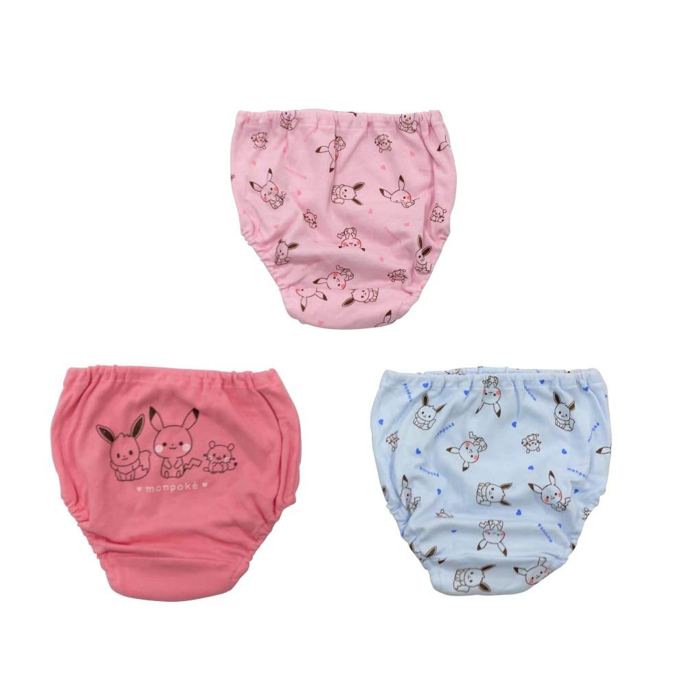 monpoke モンポケ 3枚組ショーツ 総柄×ワンポイント(ピンク×120cm)