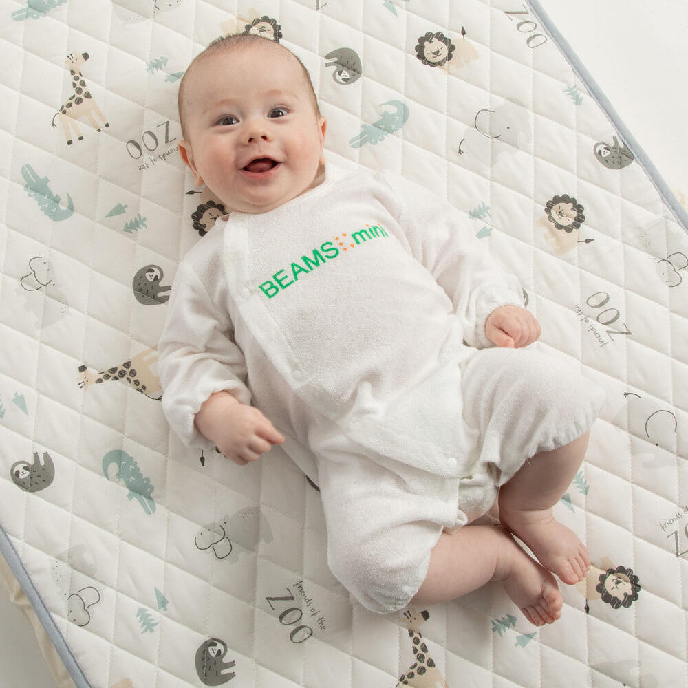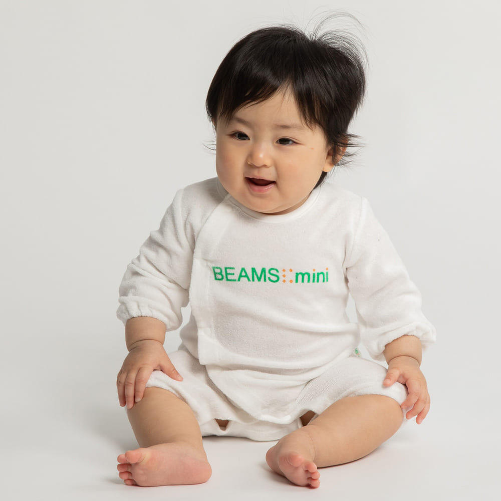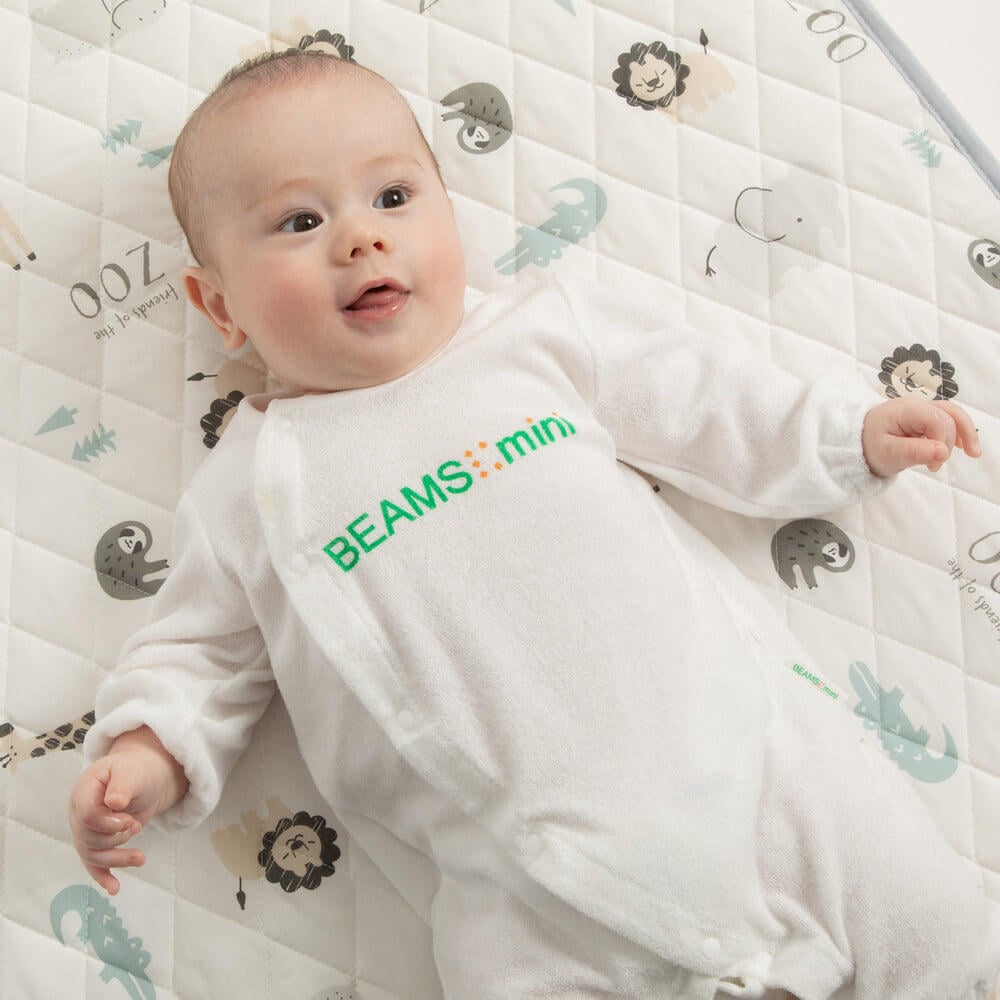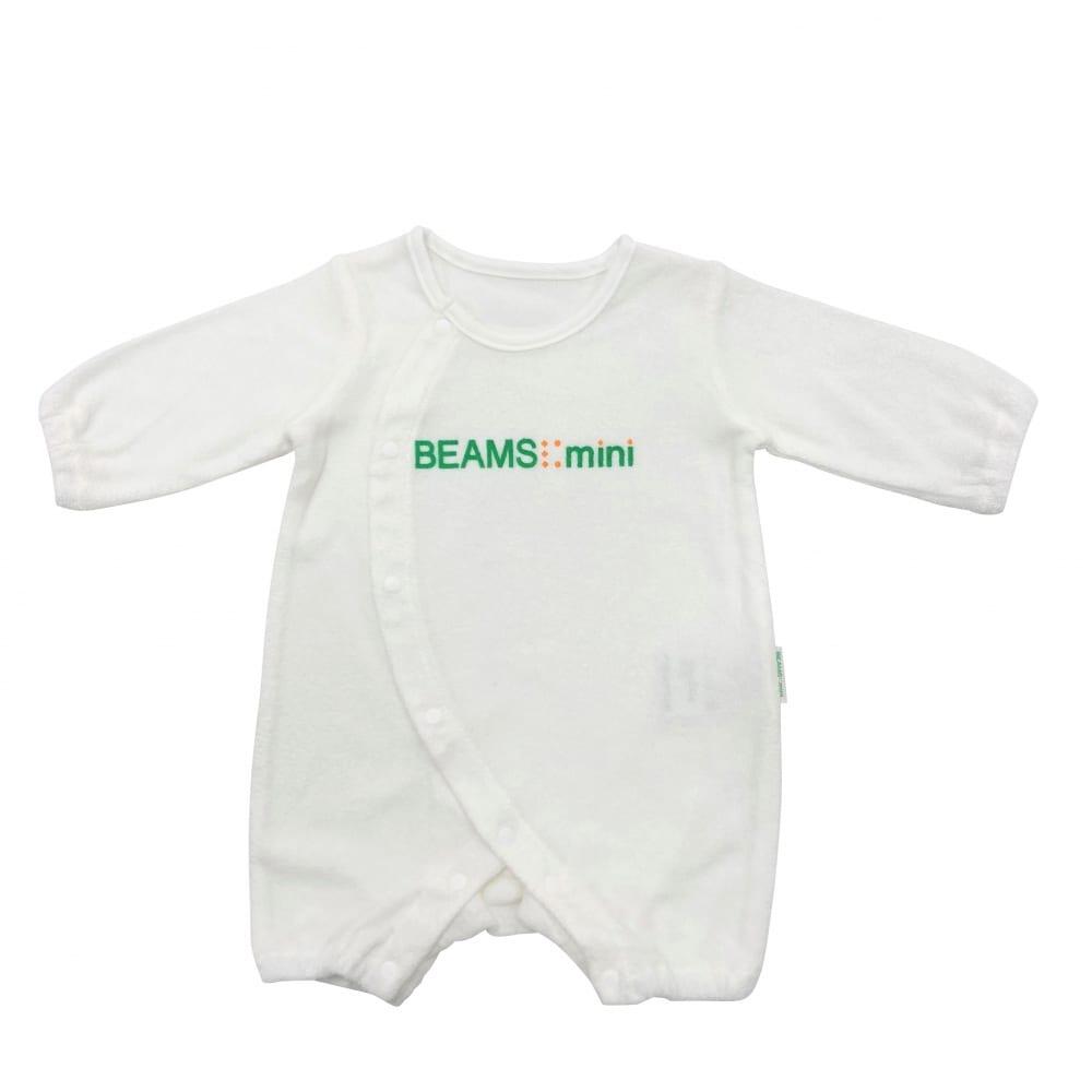 BEAMS mini 長袖前開きロンパース ロゴ ビームスミニ(ホワイト×60-70cm) ベビーザらス限定