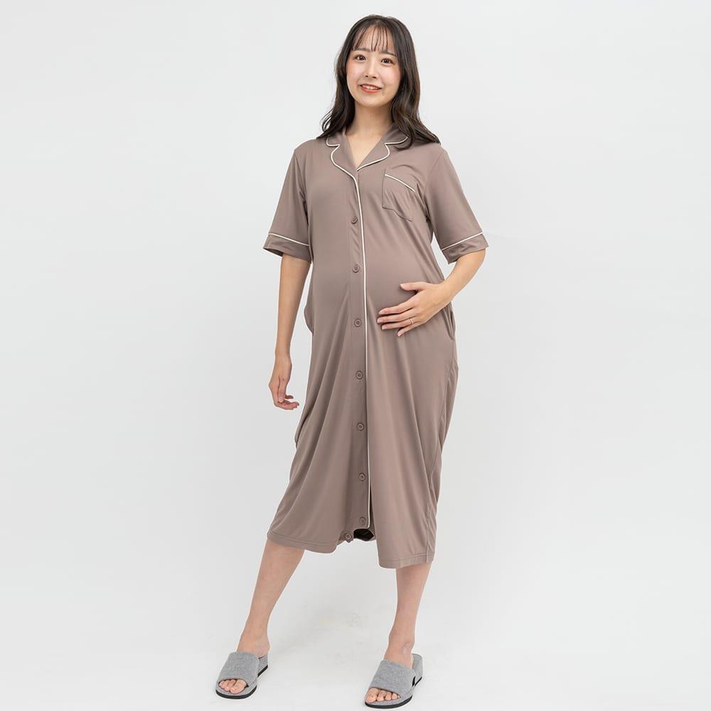 便利な2WAY半袖ワンピースパジャマ(モカ×M-L)