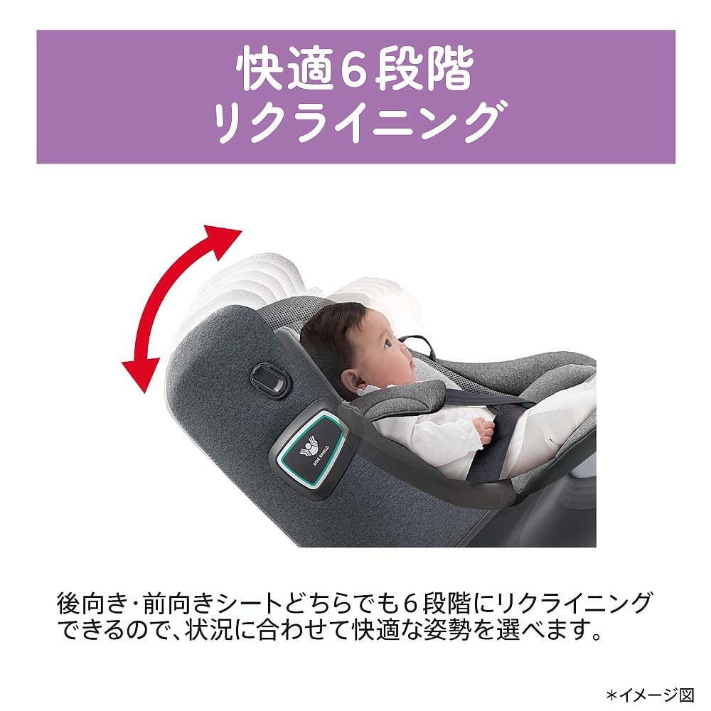 ●快適6段階リクライニング・・・後ろ向き・前向きシートどちらでも6段階にリクライニング可能。