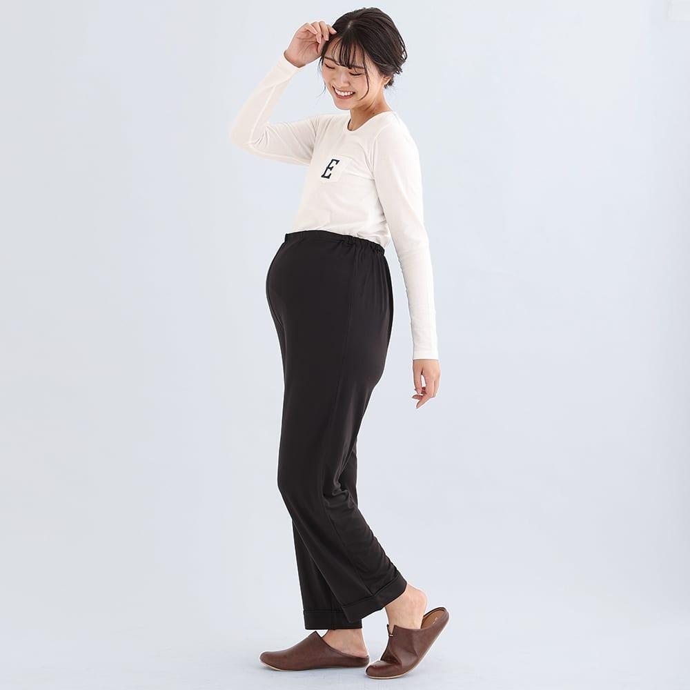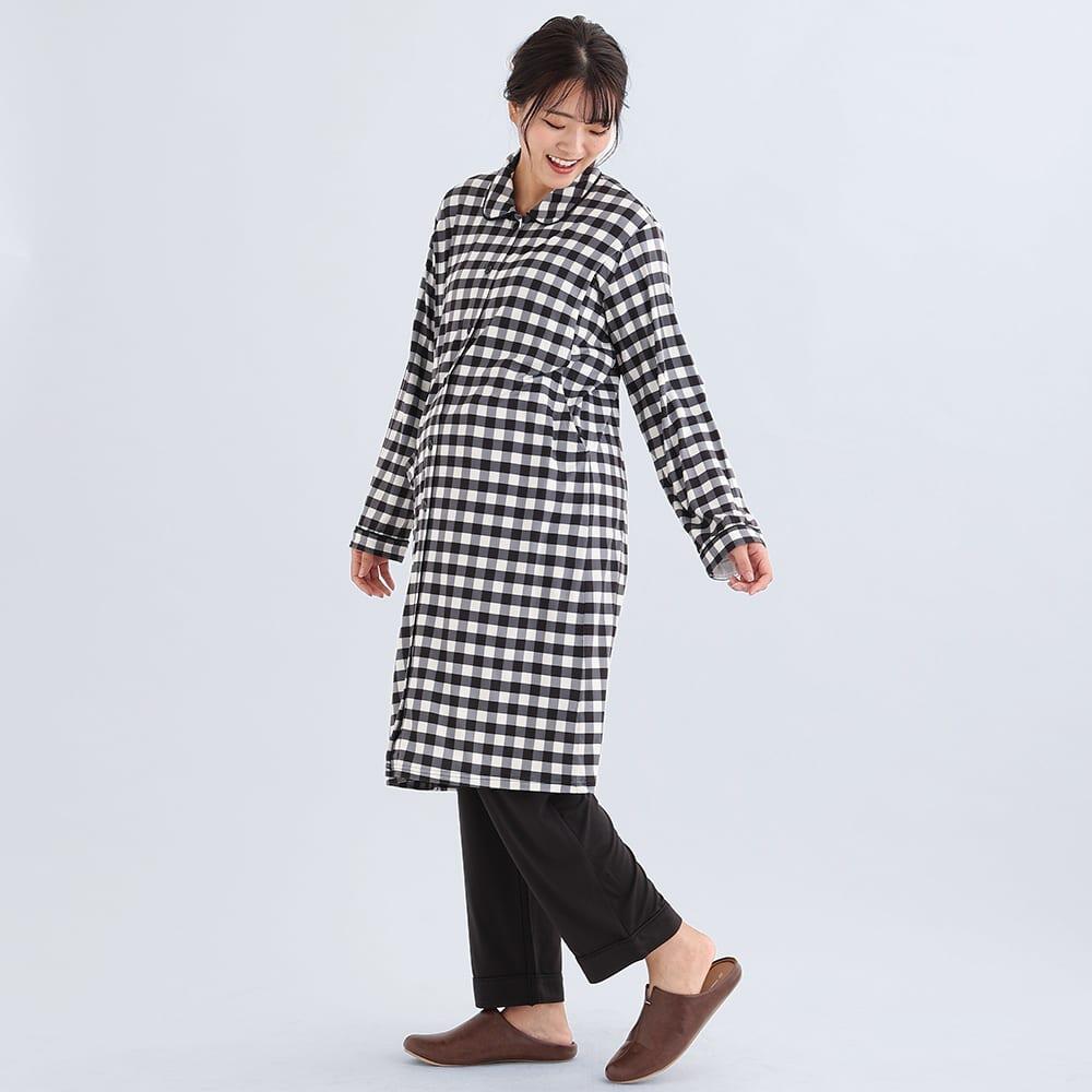 とろみらくちんパジャマ(サイドスリット)(ブラック×M-L)
