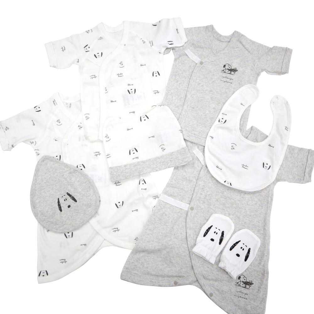 コンビ肌着2点・短肌着2点・スタイ・新生児帽子・授乳スタイ・ミトンの計8点セットです。