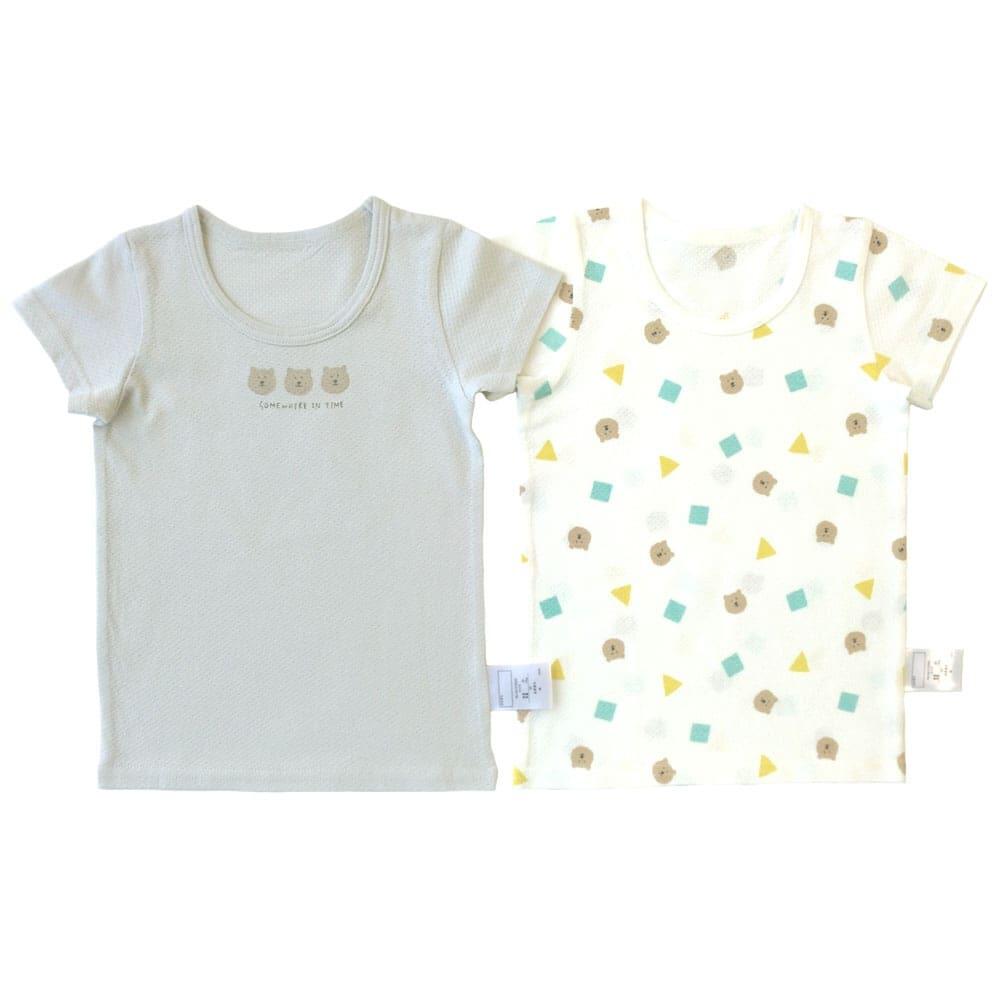 半袖シャツ肌着 2枚組 メッシュニット くま(グレー×90cm) ベビーザらス限定