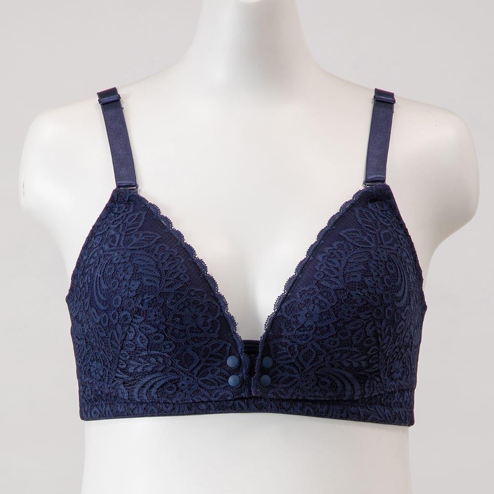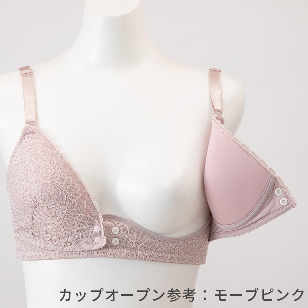 フロントオープンで左右別々に授乳ができ、アンダー部分がしっかりしている仕様なのでカップをオープンしても安定感があります。先輩ママの「1つボタンのフロントオープンブラだと、産後胸が大きくなった際の外出時にボタンがはじけて開いてしまい、とても困ったことがある」「バストの安定感がなく不安」という話が多くあり、今回の企画では、安心感と安定がある2つボタンを採用しました。