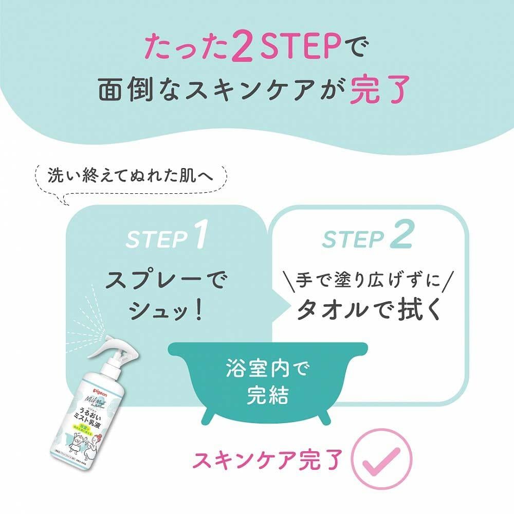 浴室内で濡れた肌に直接シュッと吹きかけ、タオルで拭くだけ。