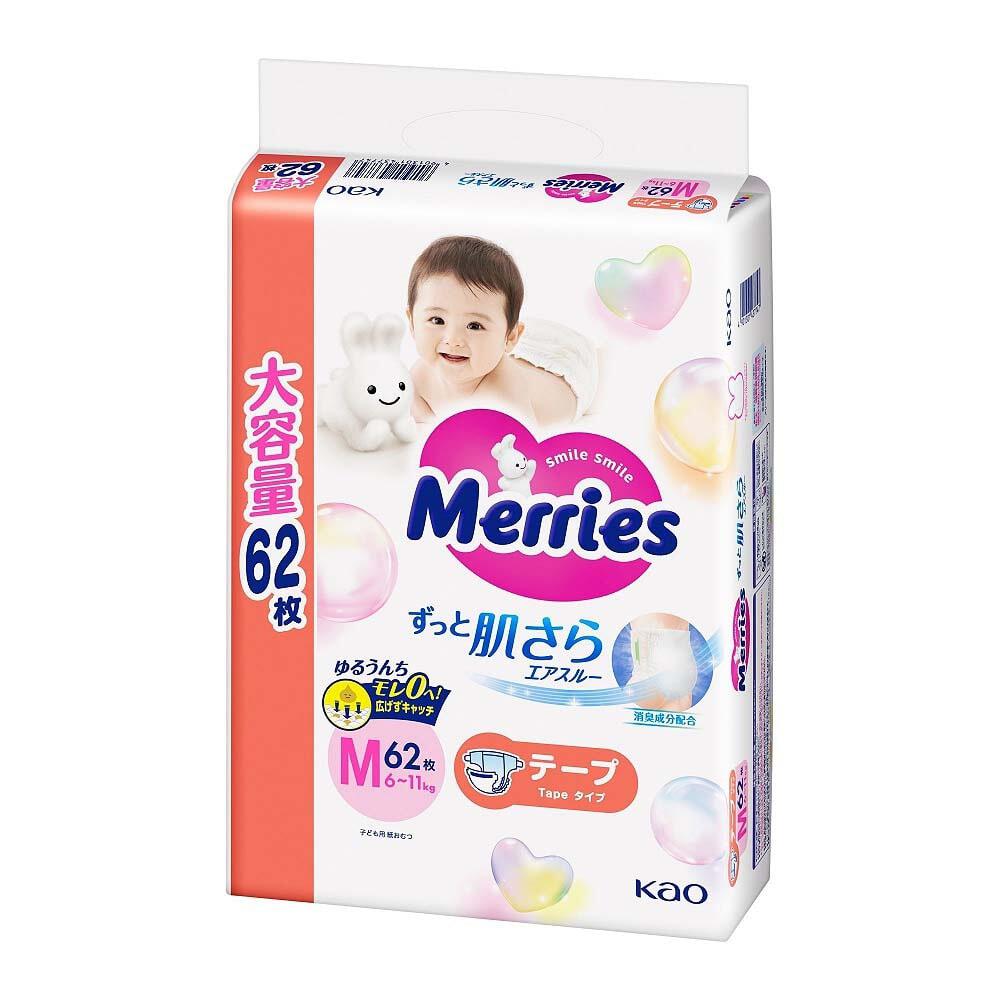 メリーズ エアスルー Mサイズ(6~11kg)62枚入り 【花王 テープタイプ おむつ】