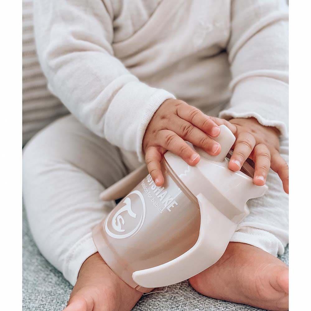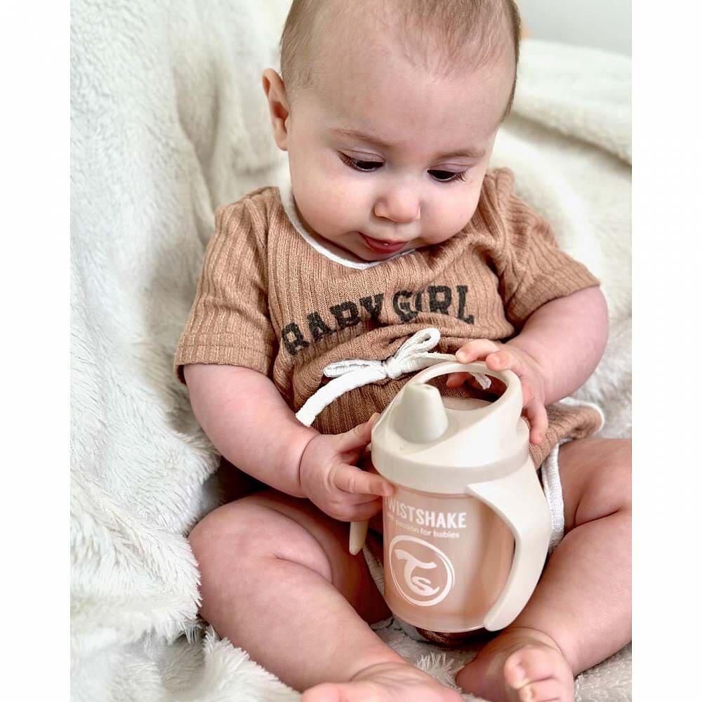 取っ手付きのミニカップは、お子さまが自分で飲めるようになる第一歩に最適です。