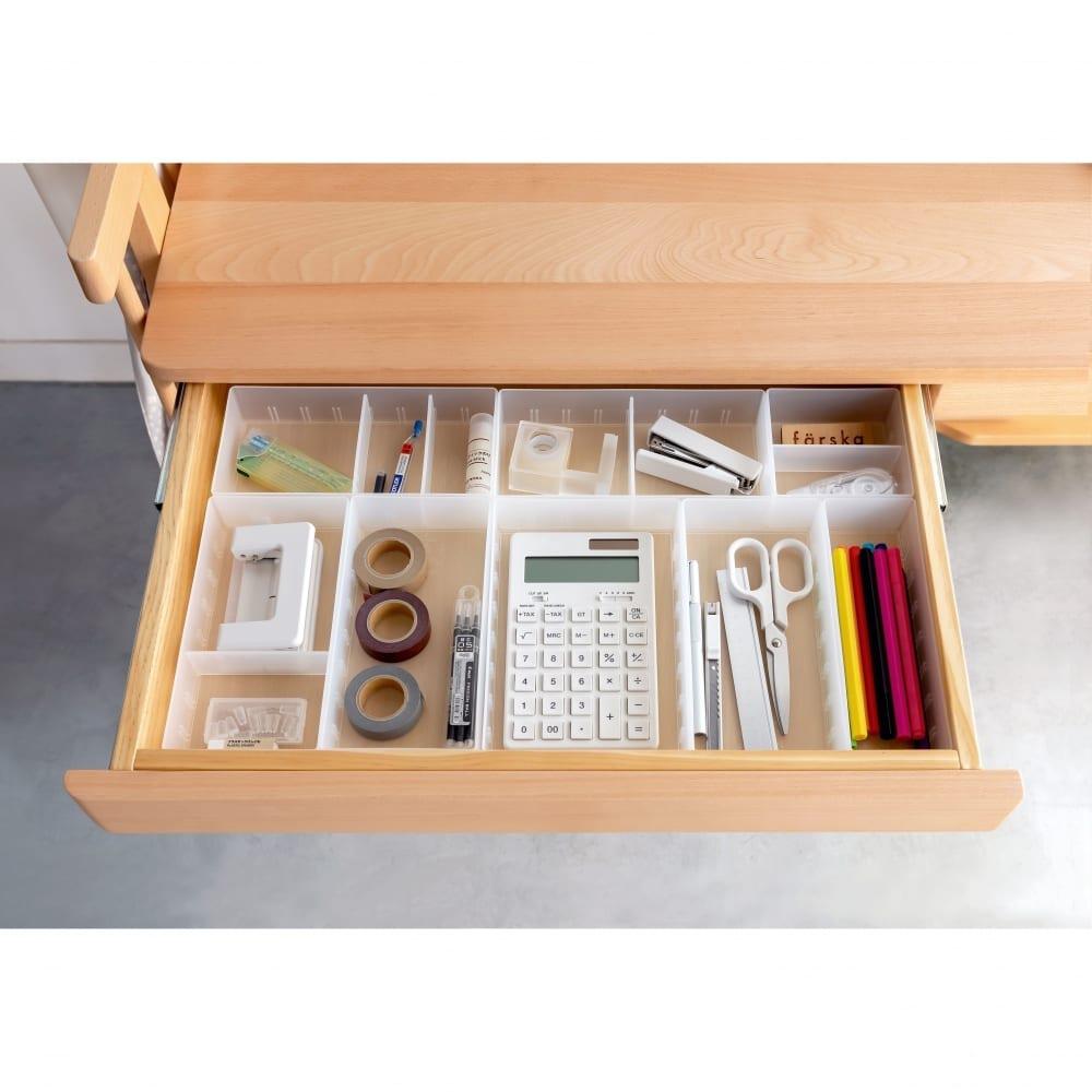 ・デスクとして使用する際も、十分なワークスペースや収納力のある引き出しがあり、学習机としても十分な役割を果たしてくれます。