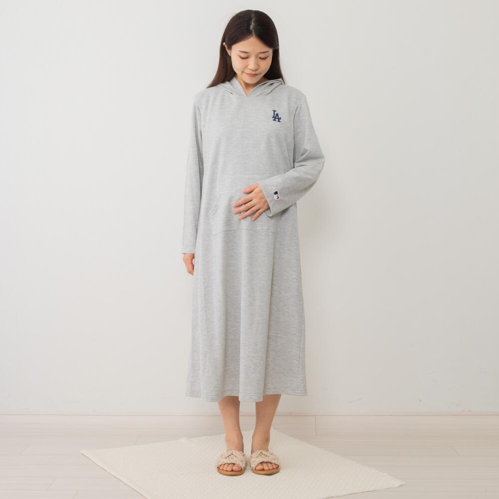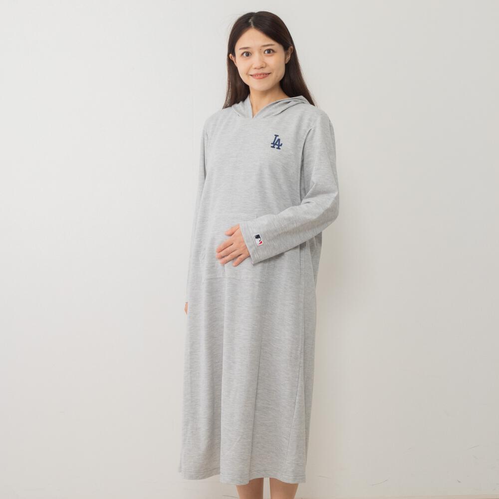MLB 長袖フードきワンピース ドジャース(グレー×M-L)