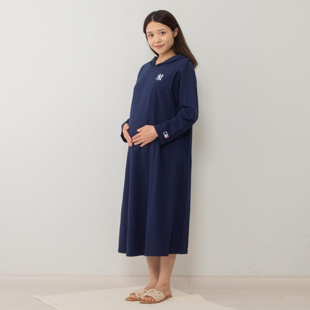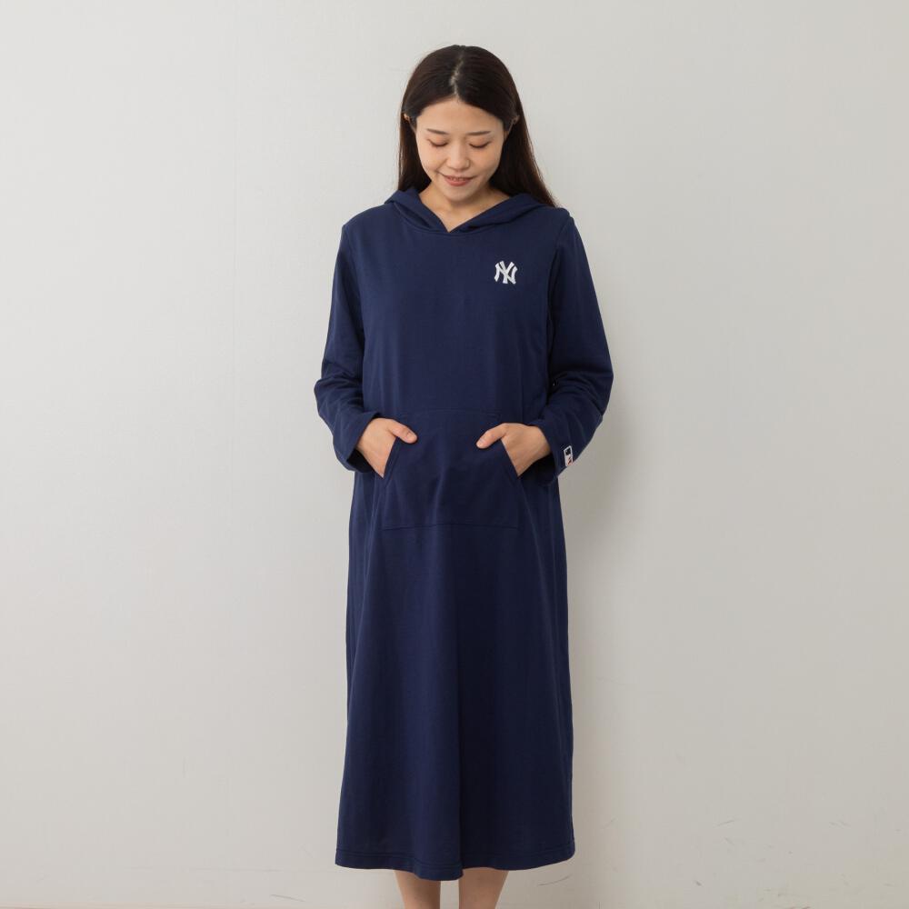 MLB 長袖フード付きワンピース ヤンキース(ネイビー×M-L)