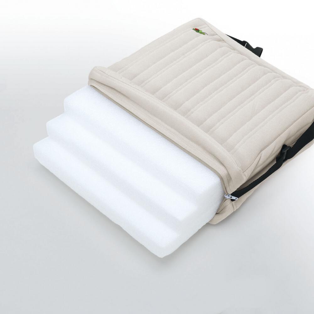 <本体サイズ>W30 ×D30 ×H10cm、中材高さ3~9cm(3段階)、ベルト周囲の長さ/130cmまで対応