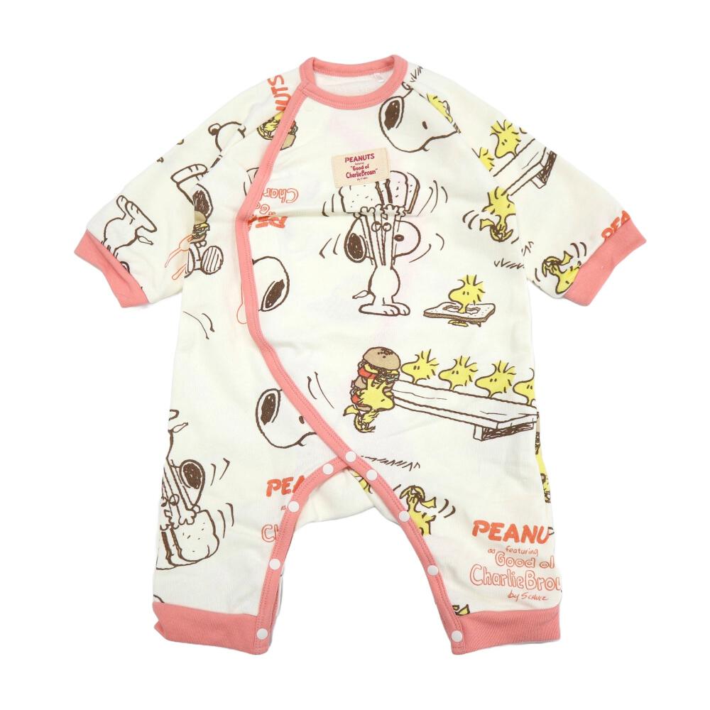 SNOOPY スヌーピー 長袖前開きプレオール 総柄 オフホワイト×70cm ベビーザらス限定 ベビー服 赤ちゃん 男の子 女の子 ユニセックス