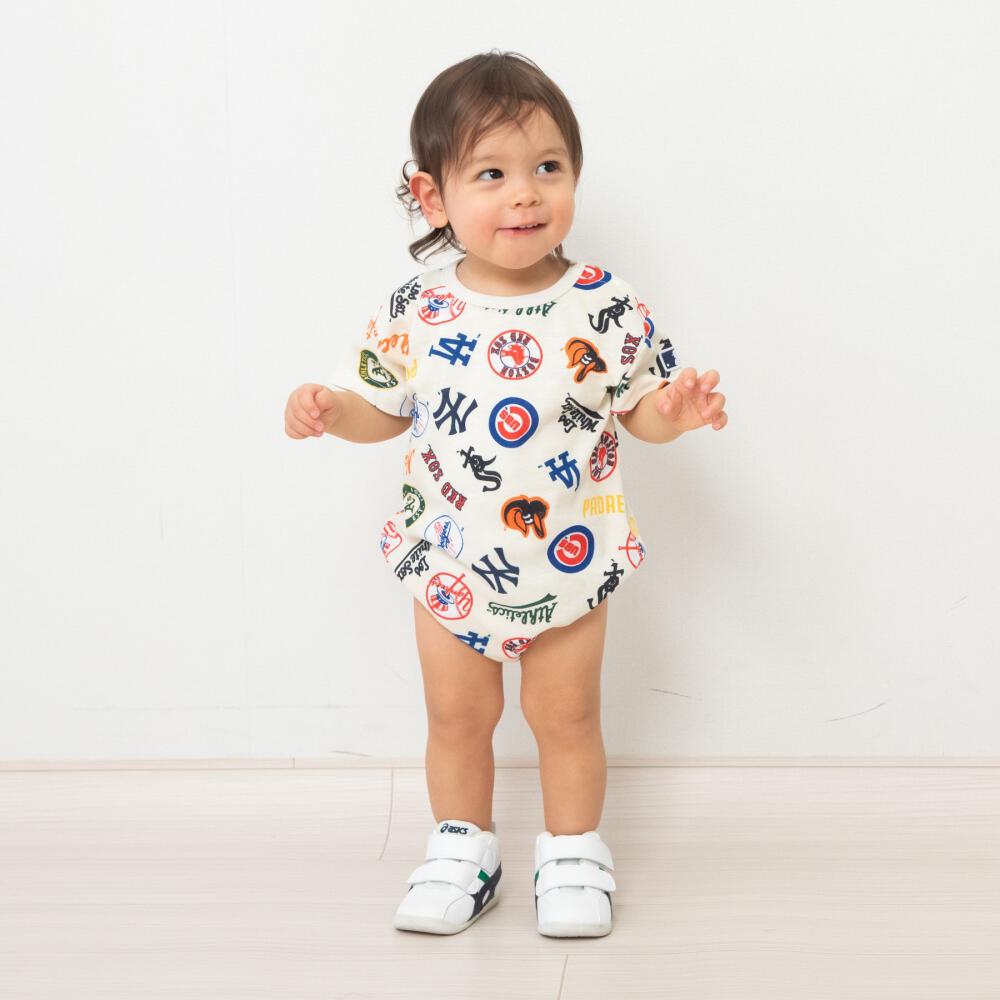 MLB 総柄ボディスーツ オフホワイト 80cm