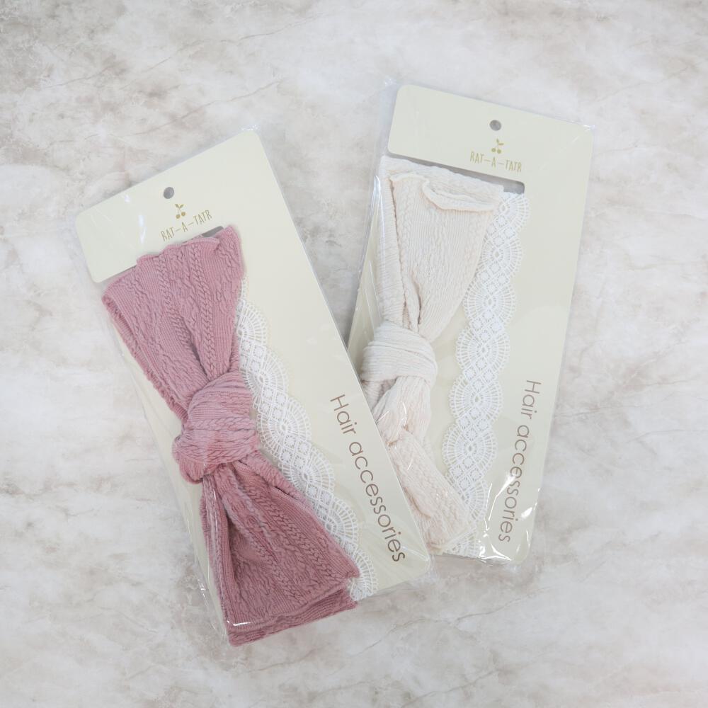RAT-A-TATR ラッタッター キッズヘアバンドセット 2本組 ジャガード レース(ピンク×FREE)