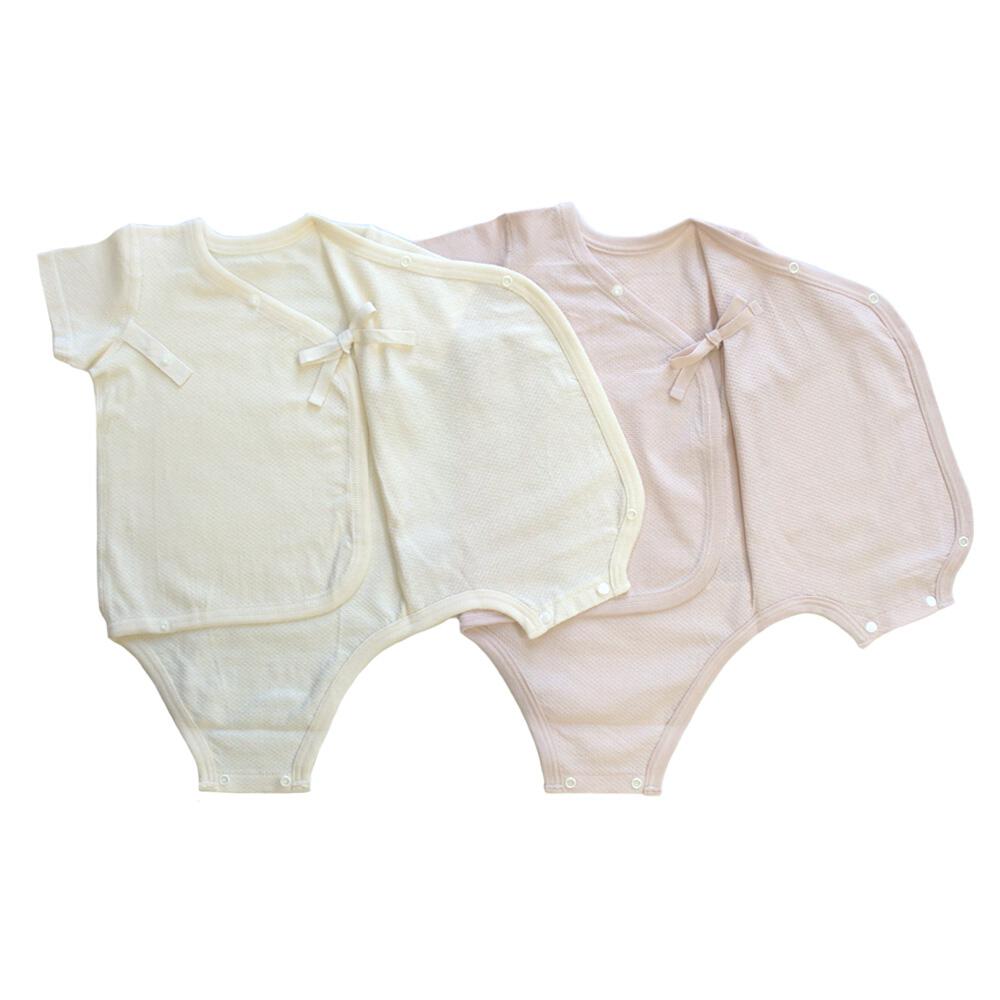 2枚組 半袖打ち合わせロンパース肌着 メッシュ ピンク×60cm