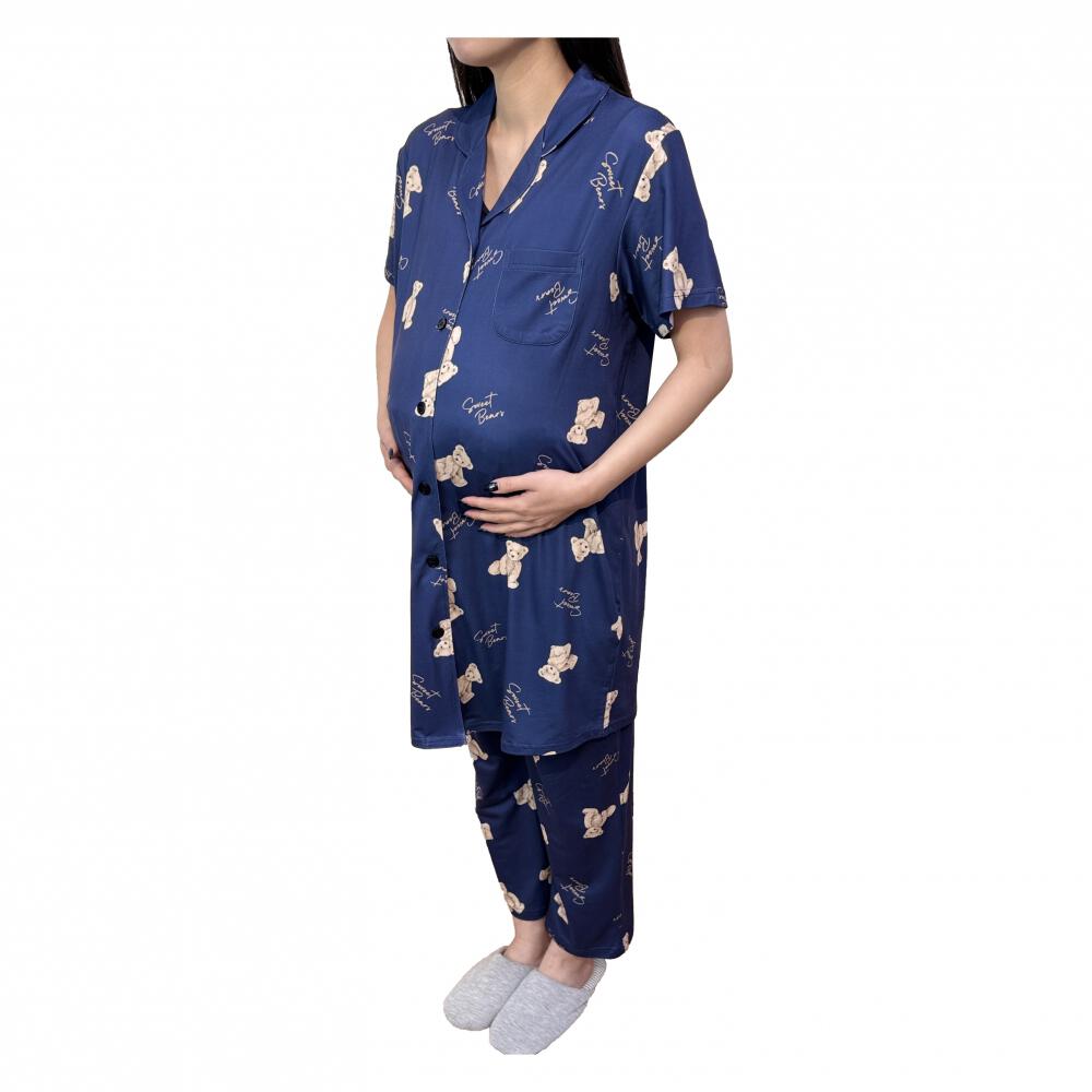 ストレッチ性のある薄手の天竺素材を使用した半袖マタニティパジャマです。