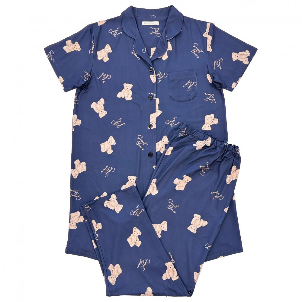 ストレッチ天竺総柄半袖パジャマ(8分丈パンツ)