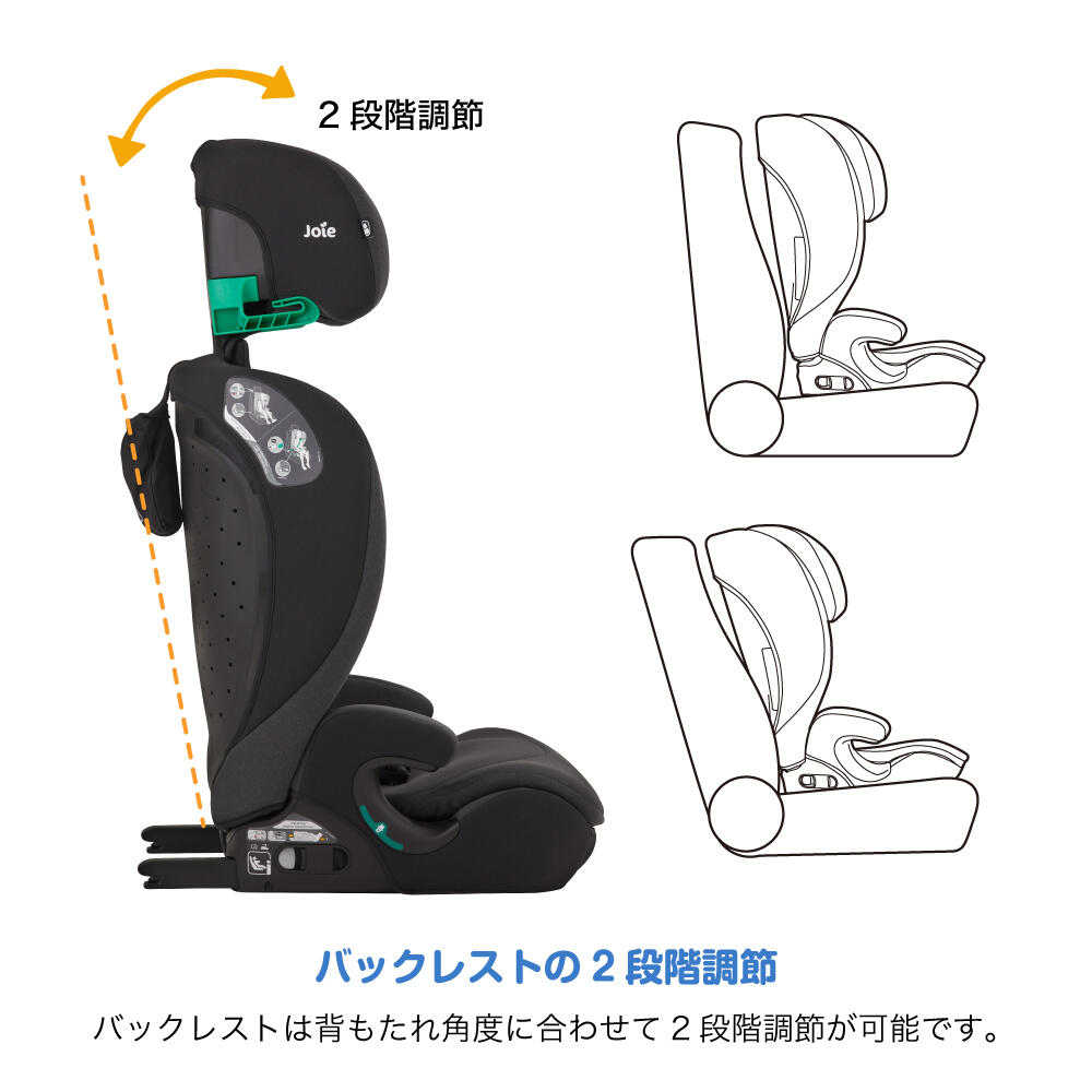 ●ヘッドレストはお子様の成長に合わせて15段階の調節が可能