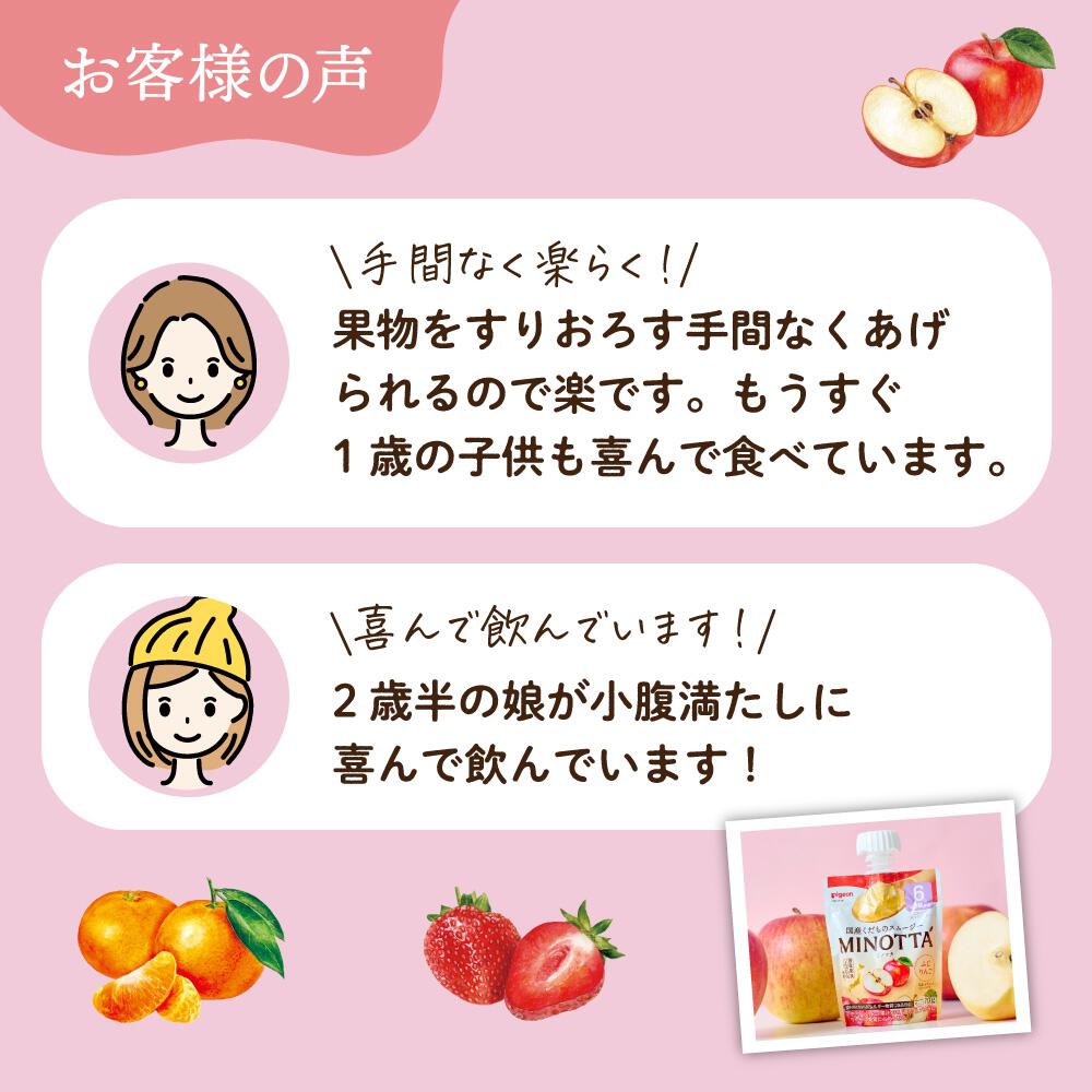 <国産くだものスムージーMINOTTA(ミノッタ)の特長>たっぷり6個入り(3種×2個)ふじりんご×2 温州みかんミックス×2 とちおとめミックス×2