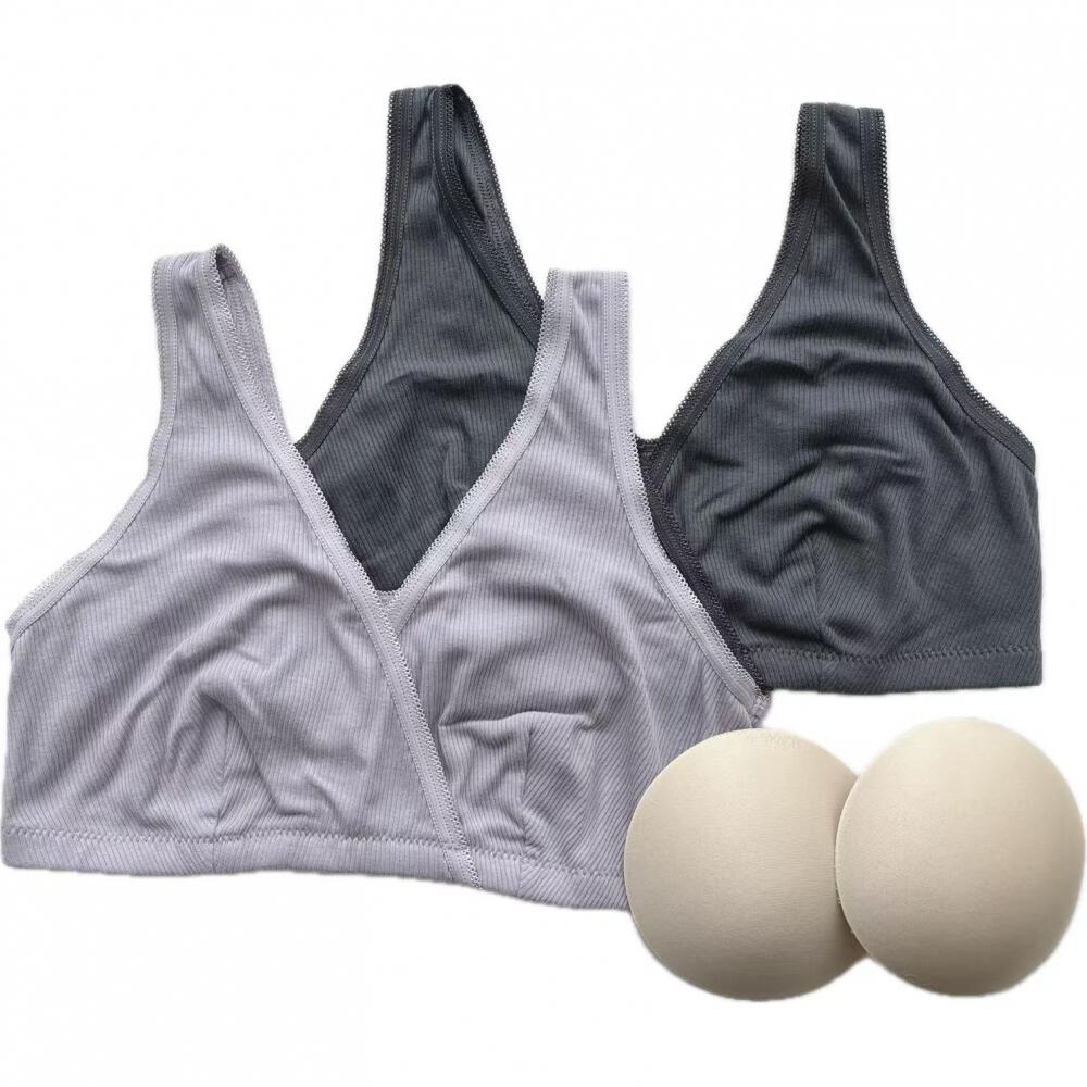 ハーフトップ リブ編み 2枚組 ダークピンク×L MU