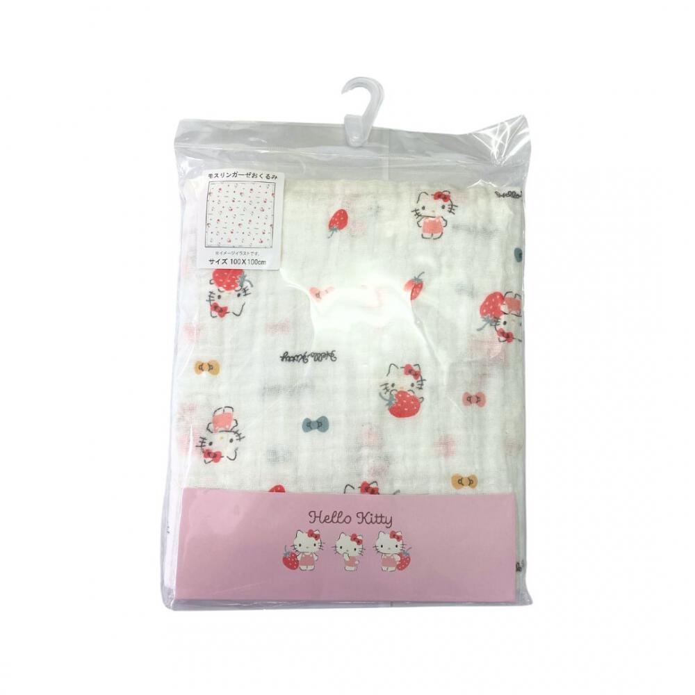 サンリオ キティ モスリンガーゼ おくるみ ホワイト×フリー