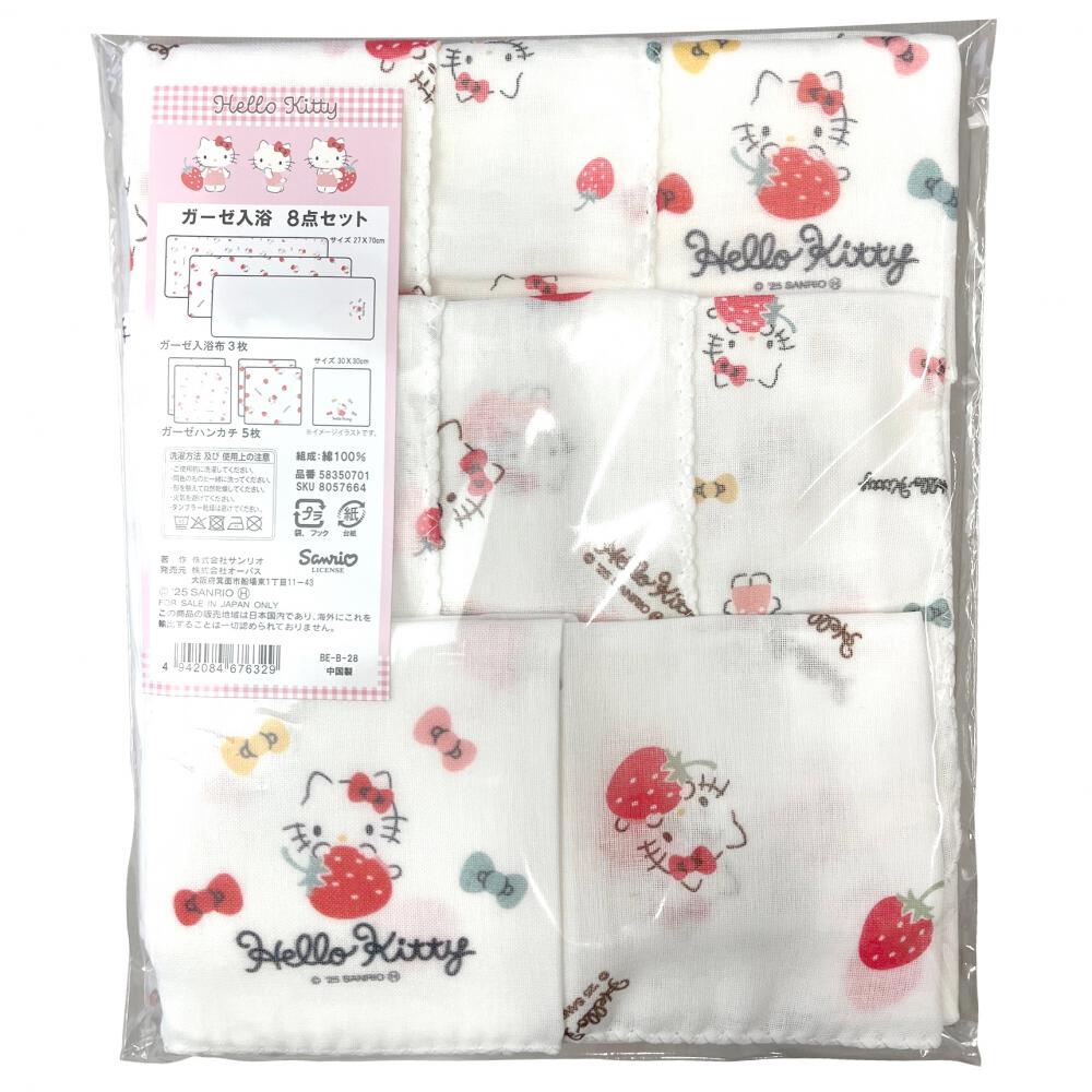 サンリオ キティ ガーゼ入浴8点セット ホワイト×フリー