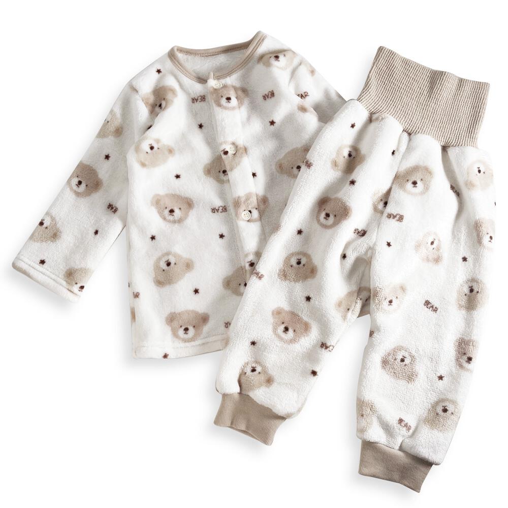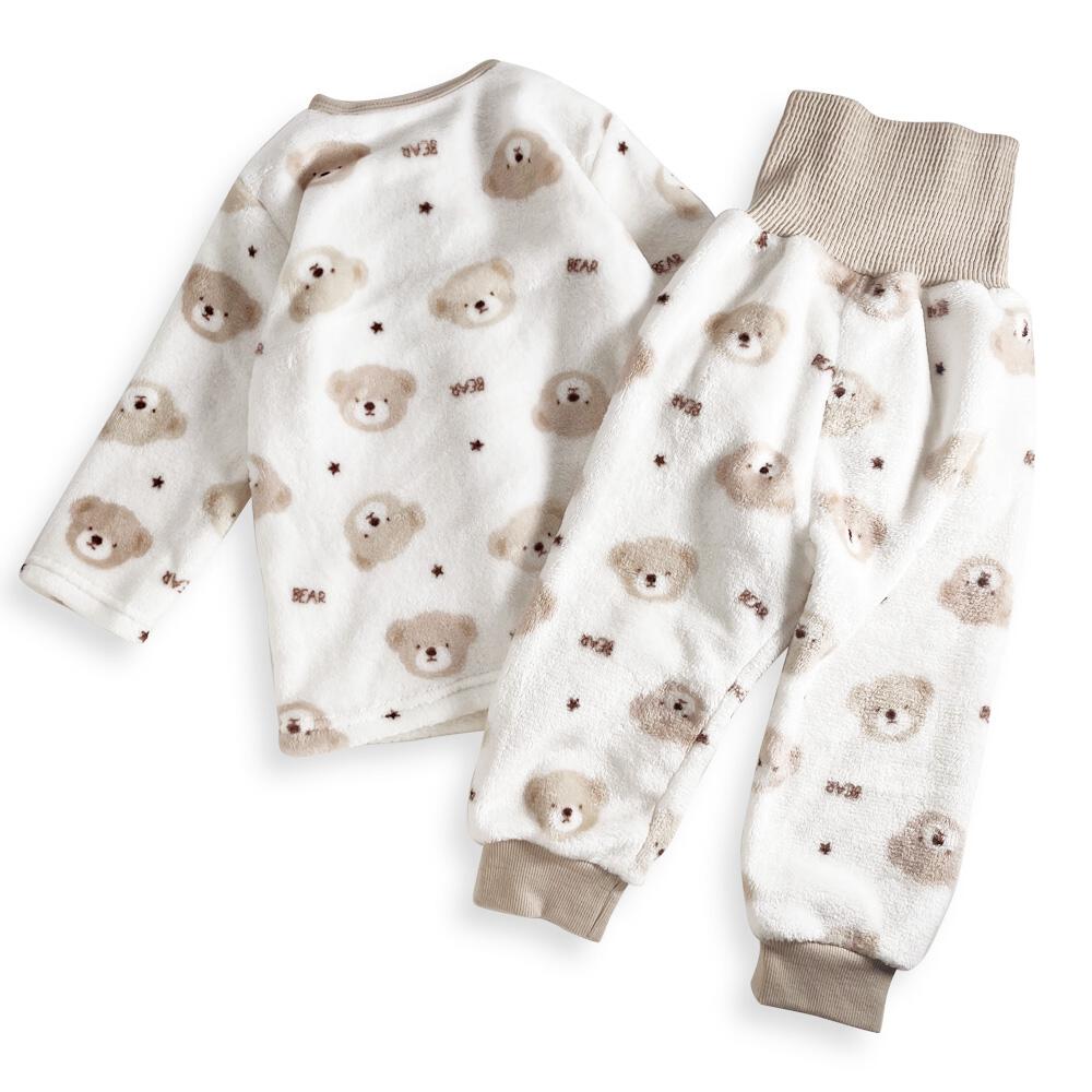長袖腹巻付きパジャマ フリース クマ柄 ベージュ×95cm