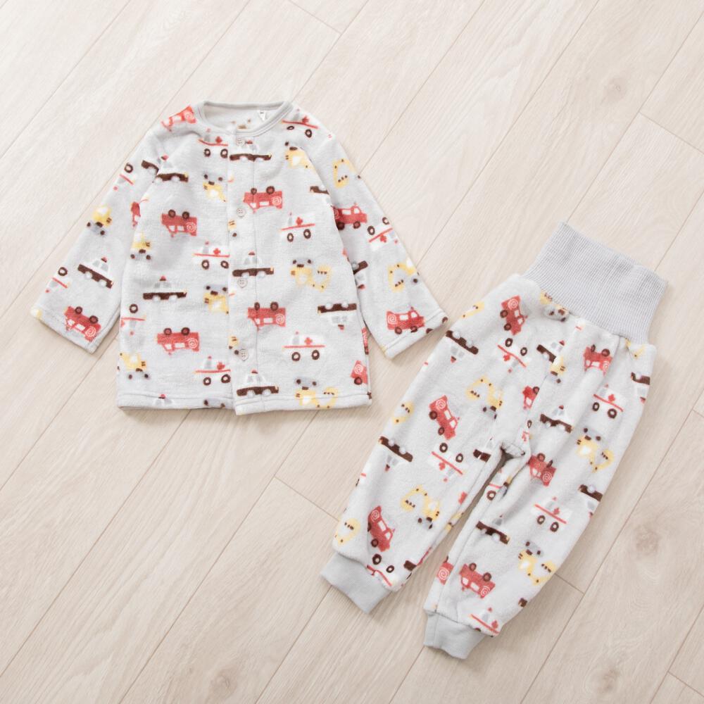 長袖腹巻パジャマ フリース 働く車柄 グレー×95cm