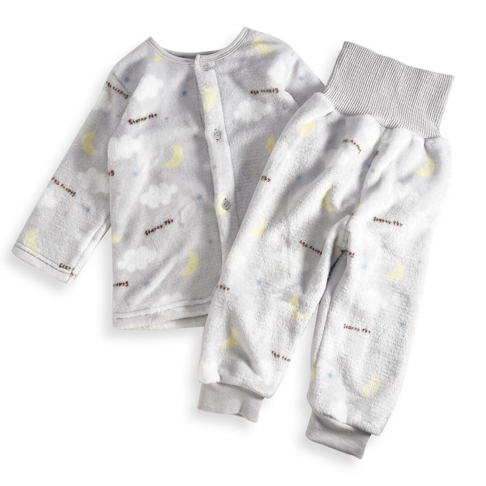 長袖腹巻パジャマ フリース 雲柄 グレー×90cm