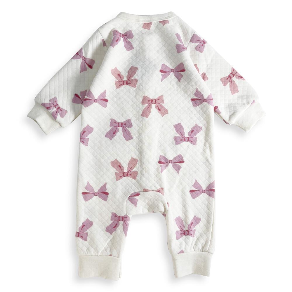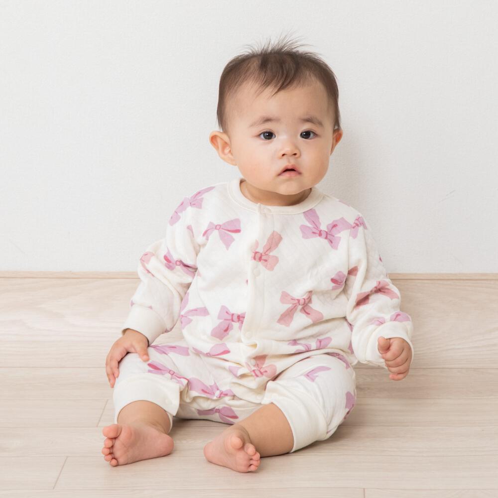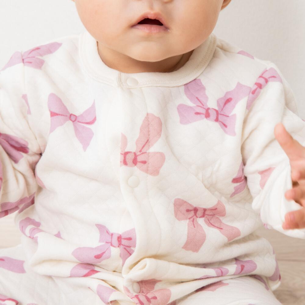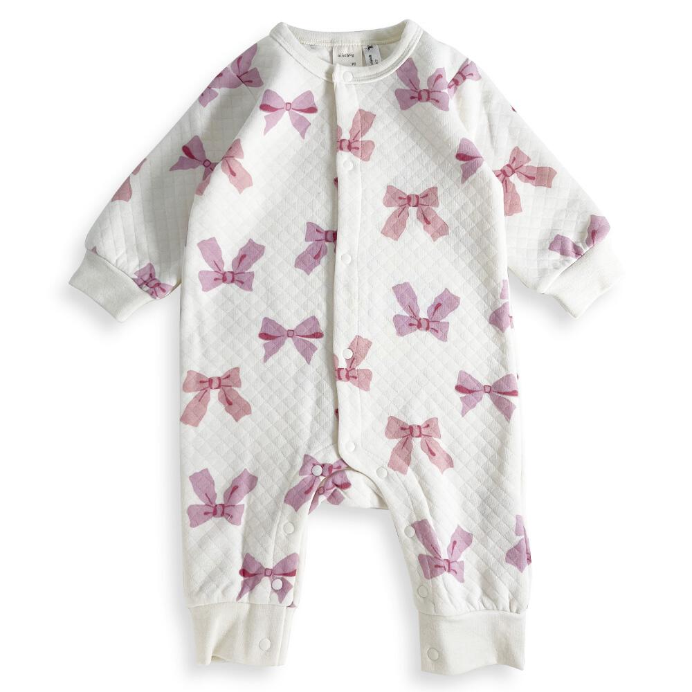 長袖カバーオール ニットキルト リボン柄 アイボリー×70cm ベビーザらス限定