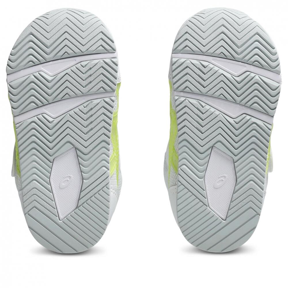 お子さまのピュアなイメージを表現するためにアシックスストライプにはクリア素材を使用しました。