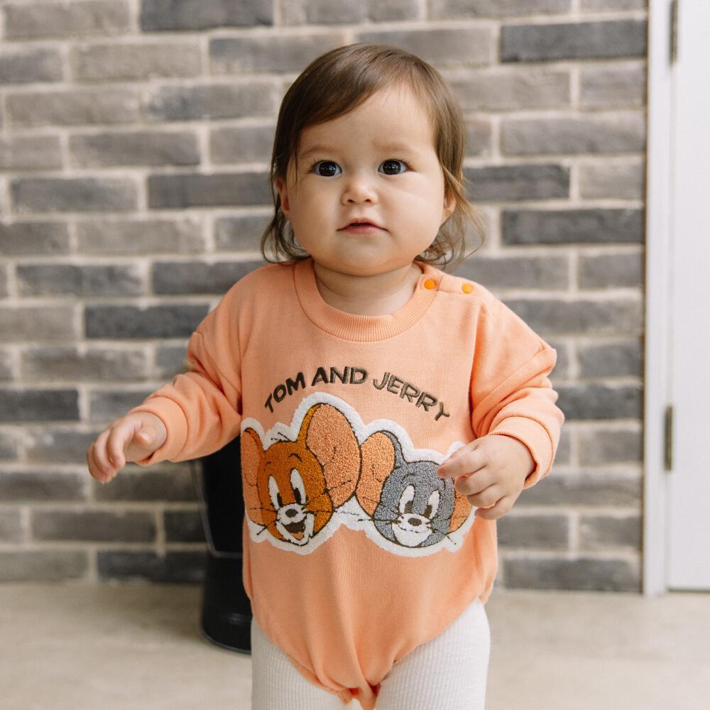 TOM&JERRY トムとジェリー 長袖さがらボディスーツ ドッカン オレンジ×70cm ベビーザらス限定