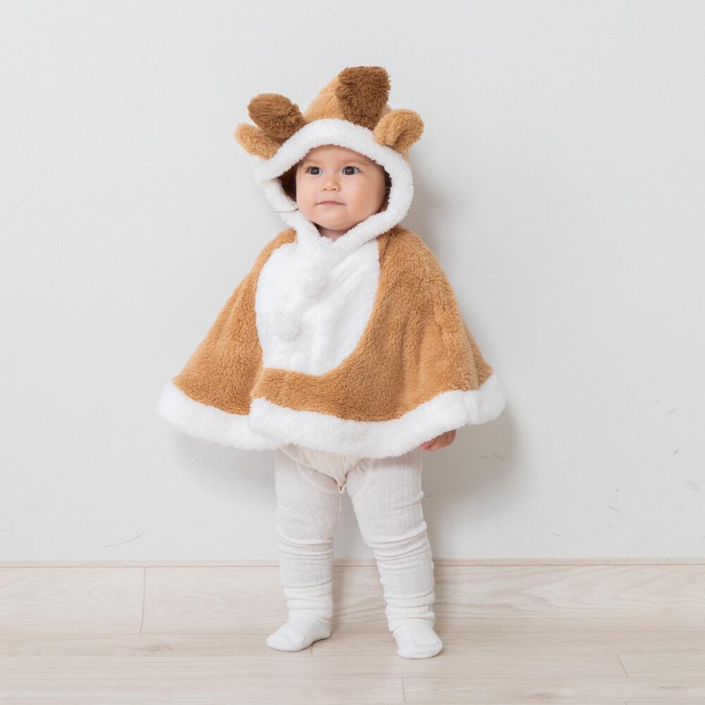 クリスマス トナカイマント コスチューム キッズ ベビー サンタクロース コスチューム 子供 衣装 ベロア ベージュ×70-90cm ベロア ベビーザらス限定