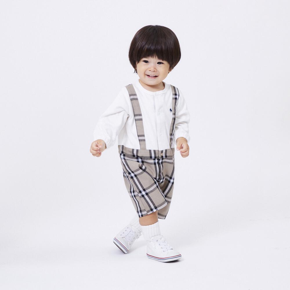 POLO BCS チェックレイヤード風ロンパース ベージュ×70cm ベビーザらス限定