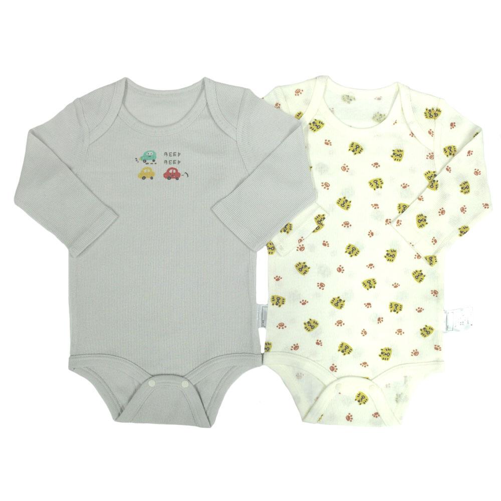 長袖ロンパース肌着 2枚組 テレコ 車 グレー×90cmベビーザらス限定